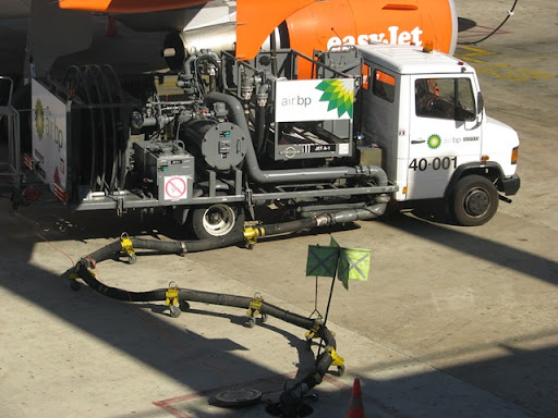 As malas para a viagem, e o cumbustível para o avião. No Aeroporto de Lisboa, Portugal.