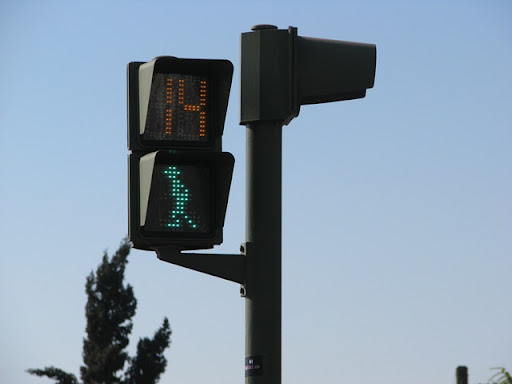 Se vais atravessar a rua, presta atenção à contagem decrescente. Em Sevilha, Espanha.